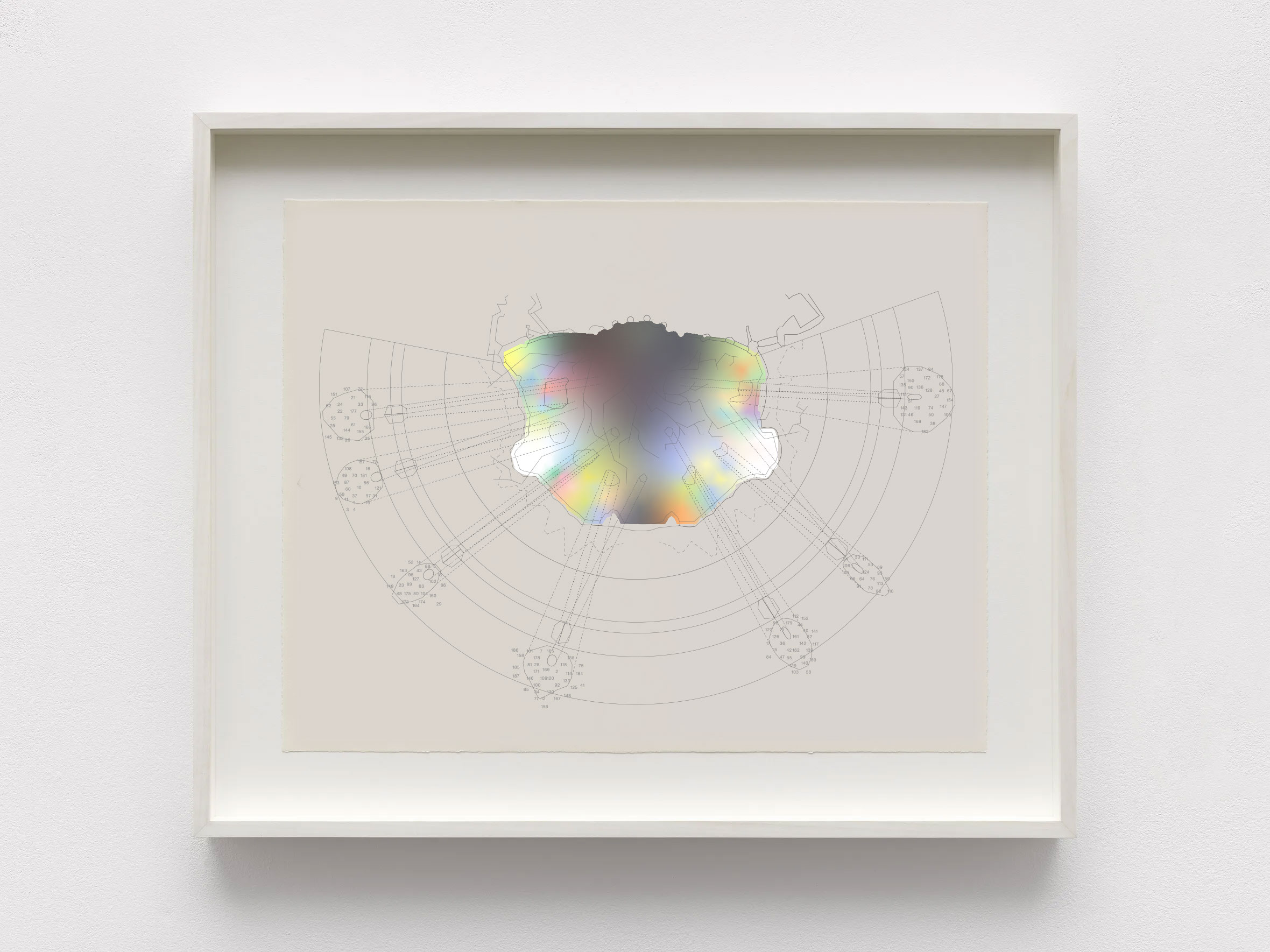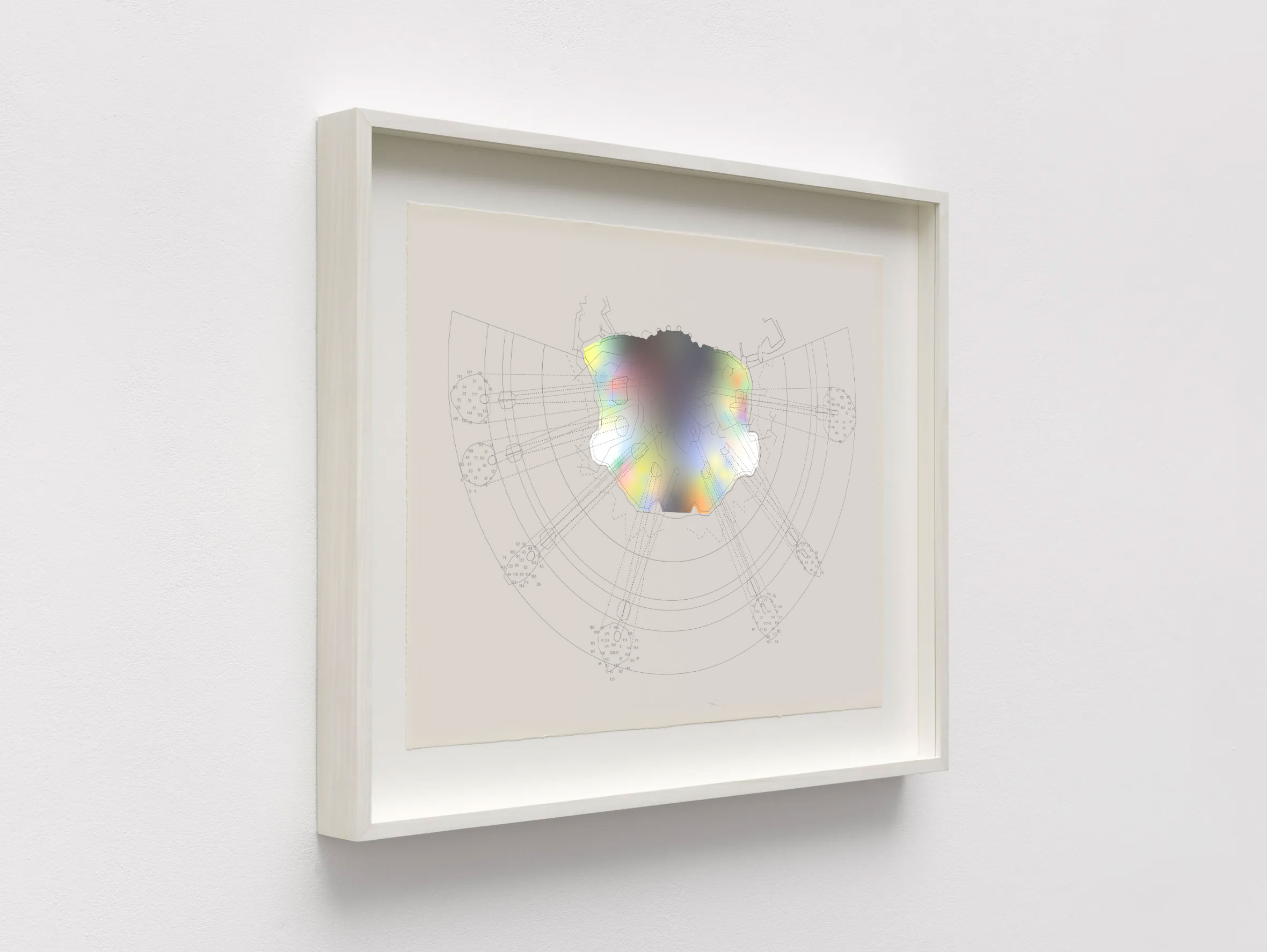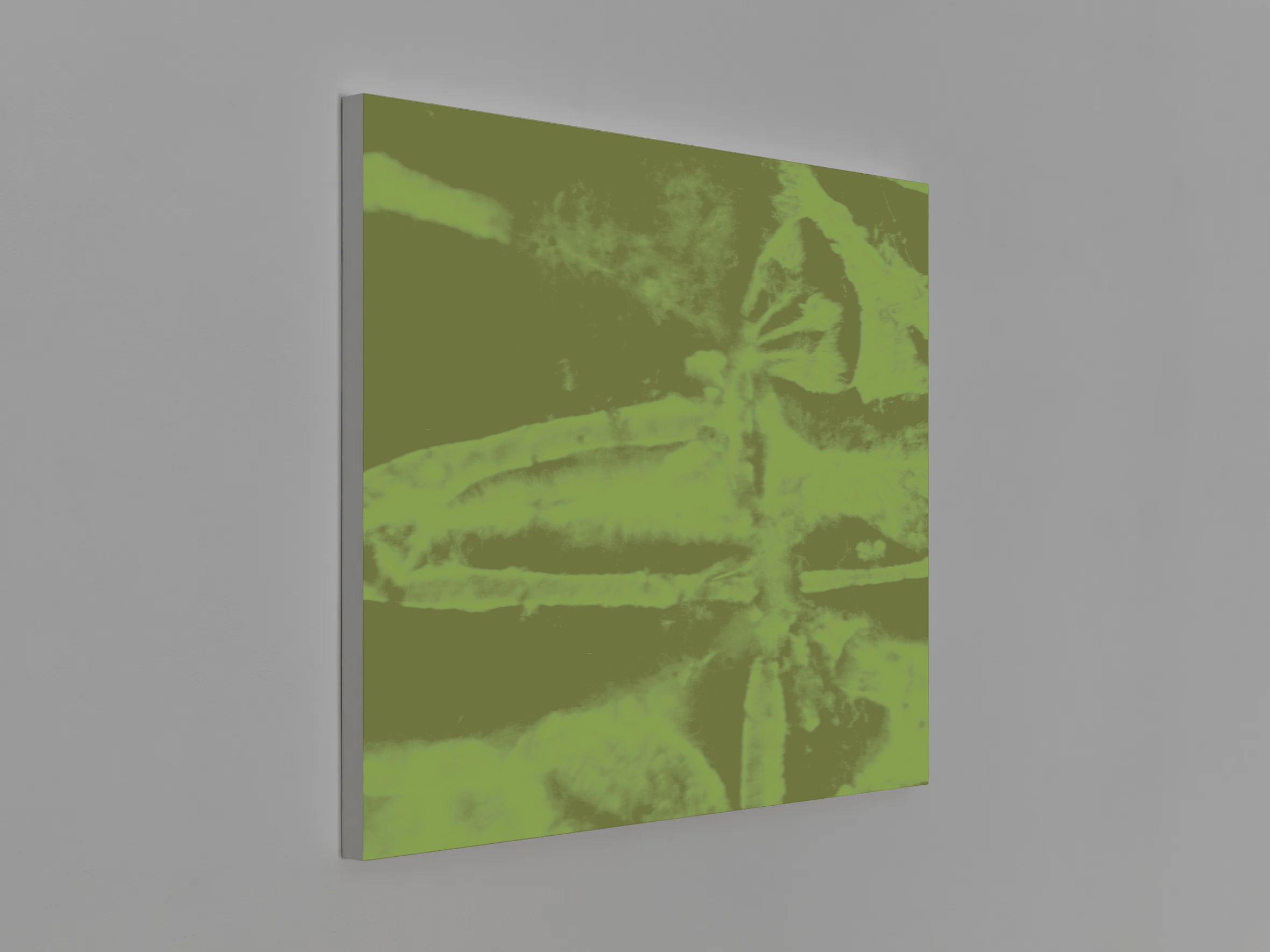 ALLO is a screen-print that uses custom phosphorescent pigmentation, it requires energy radiation to unveil in short time intervals an image from a sampled martian rock veneer. Edition of 15 printed on a ceramic slab. Production by IFS in New York. 88 x 73 ½ x 3 ½ cm / 34 ⅝ x 29 x 1 ⅜ inches. 10-day production time.